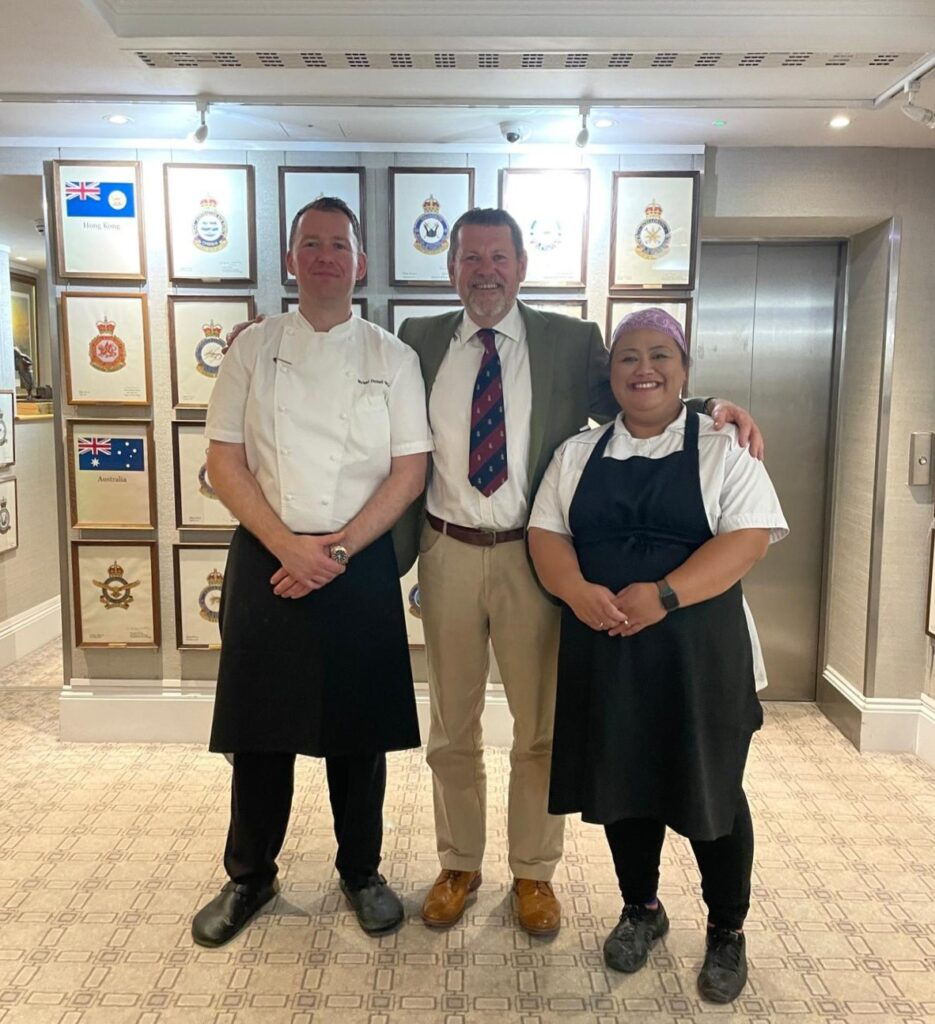 It turns out that W Bro Paul and his family are avid fans of “Bake Off”. They had been cheering on a team from the RAF Club who had made it through to the finals of Bake Off: The Professionals. Pastry Chef Gerol and Executive Chef Michael were runners up in that final, a most impressive performance. Paul asked if Gerol and Michael were in and was delighted to be taken through to meet them. That really made his day.