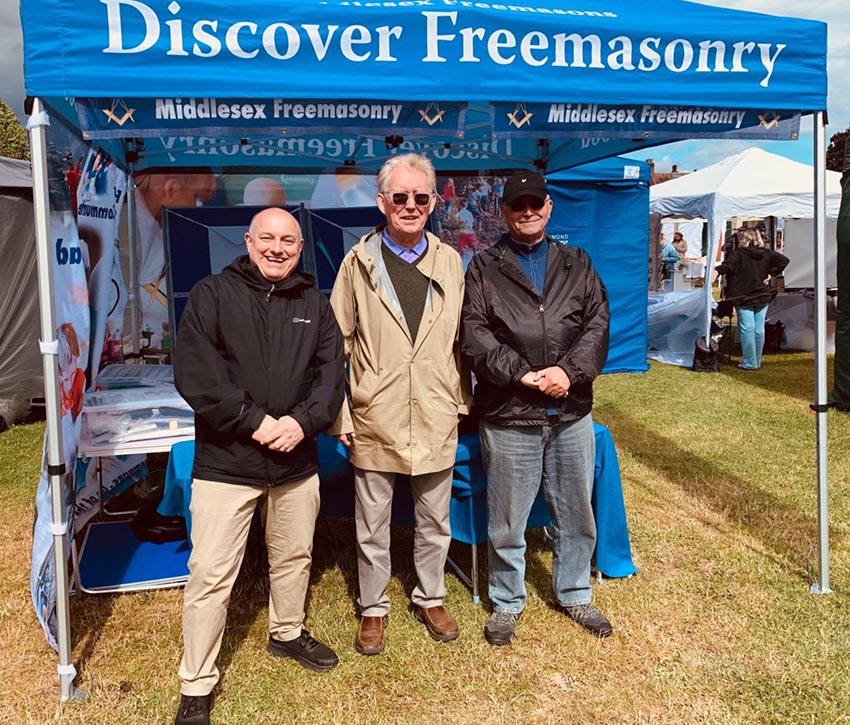The Fair took place on Saturday July 6th at Moormead Park, St Margarets which is situated very close to TDMC and the Provincial Office. The website inviting stall holders to register will inform you that it is a fantastic day out for the local community, which no doubt it is, during the height of the summer. The Team who attended representing Middlesex Freemasonry may have a different interpretation of the word summer. Nevertheless, the show went on with our three masonic volunteers; Mike Emmett, Jim Owens and Iain Raymond who braved the weather outcome.