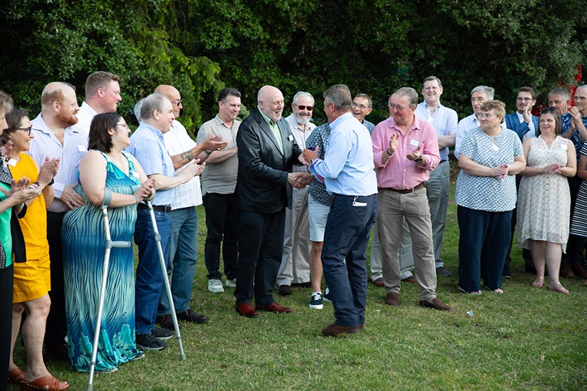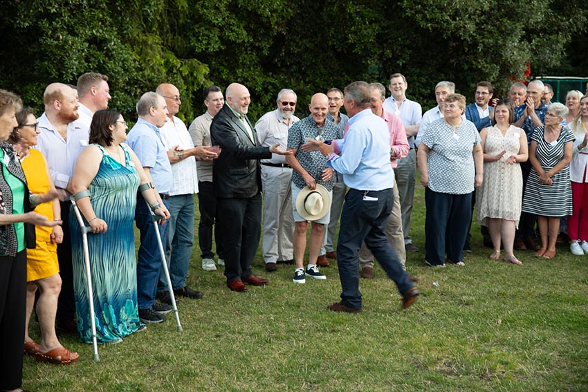 The centre caterers excelled in their culinary duties, presenting a superbly cooked and diverse spread that pleased all palates. Approximately 85 guests were seated, enjoying the food and wine amidst an atmosphere filled with camaraderie and enjoyment. The scent of grilled meats and freshly prepared dishes filled the air, enticing everyone to partake in the feast. The wine flowed freely, complementing the delicious food and adding to the convivial atmosphere. Guests engaged in lively conversations, sharing stories and laughter that echoed across the lawn, creating a joyous and memorable event.