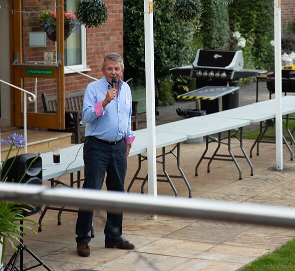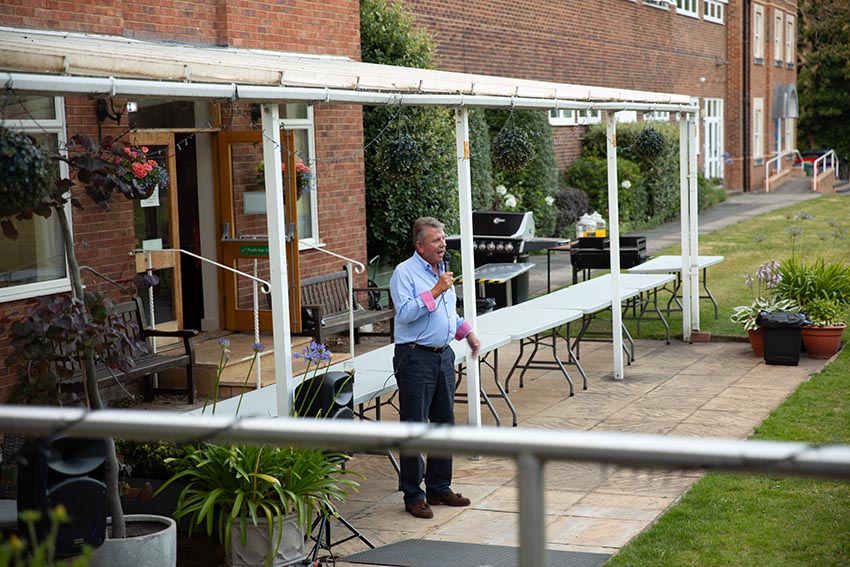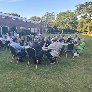 This year’s Active Middlesex Provincial Grand Officers and their partners assembled at Cole Court in Twickenham this evening for a delightful BBQ, personally invited by the Pro Provincial Grand Master, David Allan. After enduring weeks of dreadful inclement weather, the day finally offered a warm evening, perfect for an outdoor gathering on the lawn.