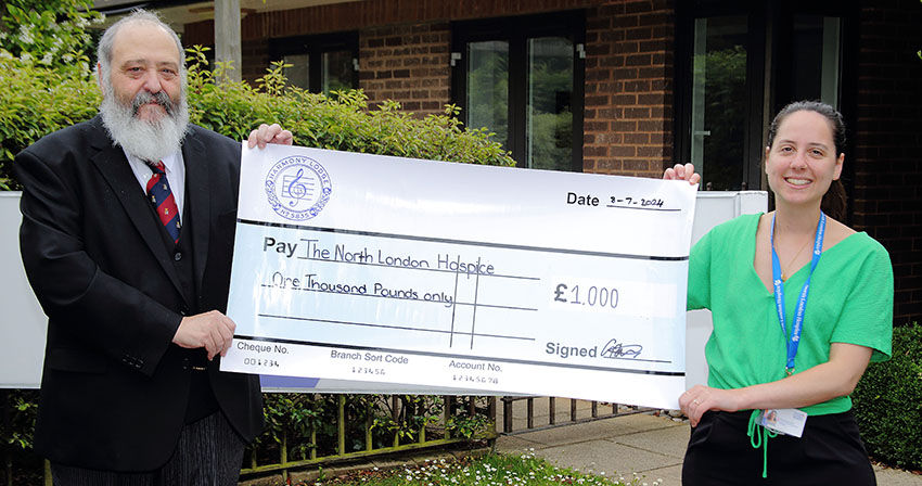 On the 8th July W Bro Graham Bettinelli presented a cheque for £1,000 from Harmony Lodge No 5835 to the North London Hospice. This donation was in recognition of the excellent treatment Graham’s mother received at the hospice during her six week stay.