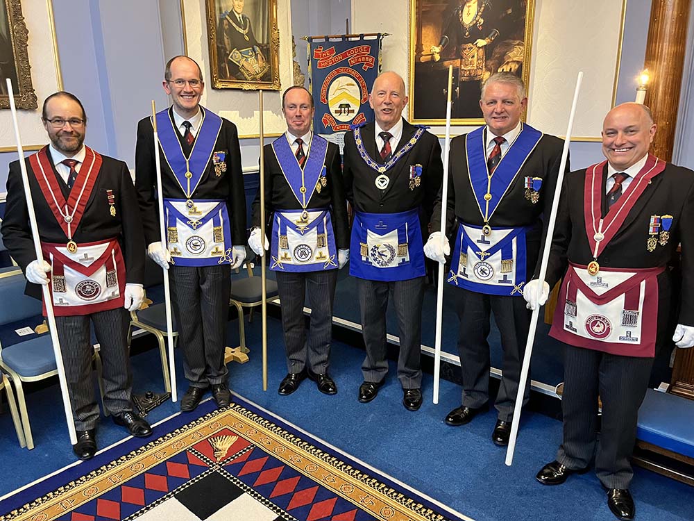 The WM vacated the chair in favour of W. Bro Bob Rough who initiated his son in law assisted by Bro Lee Baigent the candidate’s uncle who presented the North East Corner. Bro Lawrence Watmore presented the First Degree working tools and Bro Tony Slark the Ancient Charge. 64 brethren dined at the festive board and the atmosphere was extremely friendly, warm and at times loud, just the way it should be.